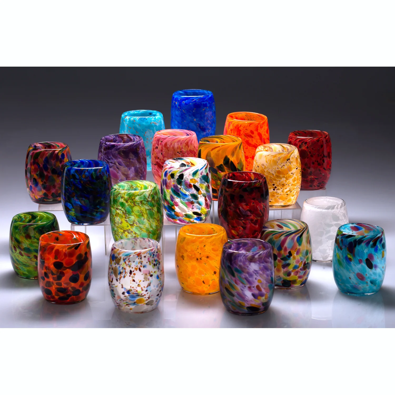 Each votive holder is unique in the way the colors blend together. The art glass has a tendency to look completely different when rotated. We try to maximize translucency when lit. It take a vision, many hands, two layers of molten glass, three layers of color and a 2000 degree furnace to make one glass votive. Each votive is handmade and signed by the artist. Since every one is a unique piece of art, each will shine with its own lively, signature glow when lit.